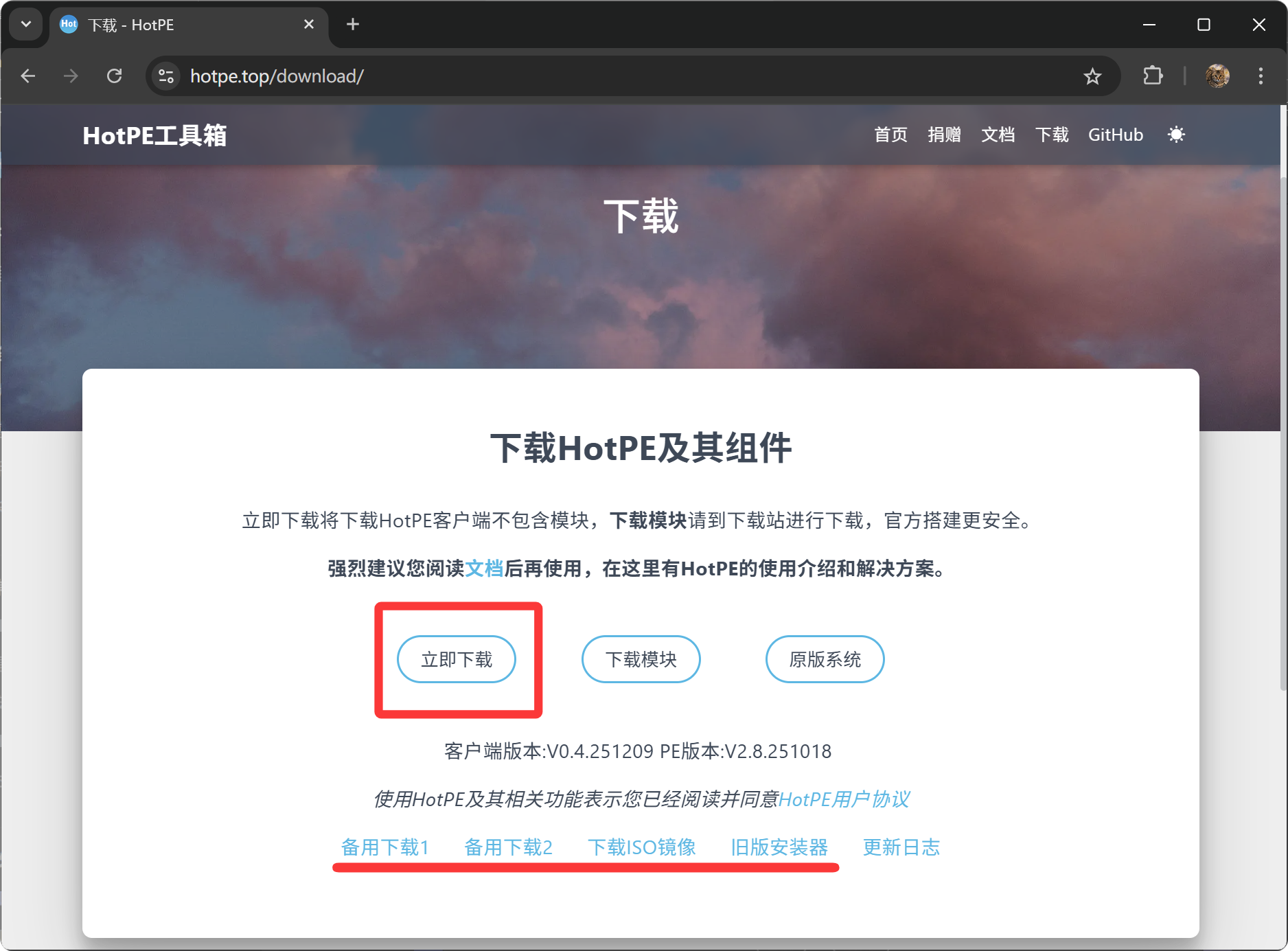 打开HotPE官网,在下载页面选择“立即下载”或通过其他方式下载。