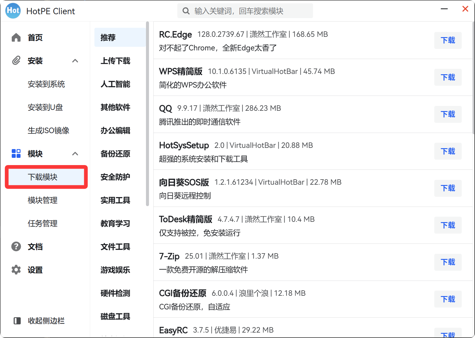 其他下载方式:可通过HotPE Client模块管理或者PE中的模块商店下载