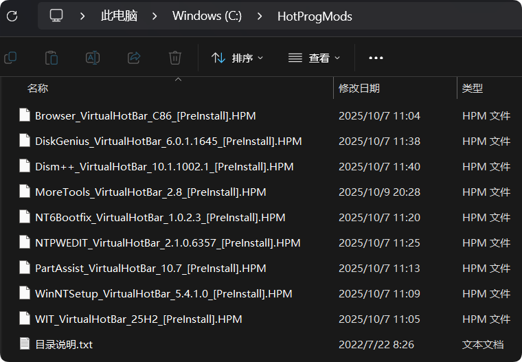 将模块文件放到HotPE安装磁盘下的HotProgMods文件夹,实现进入PE时自动加载